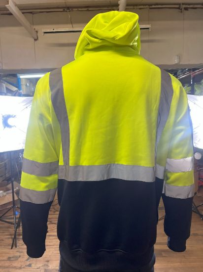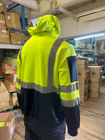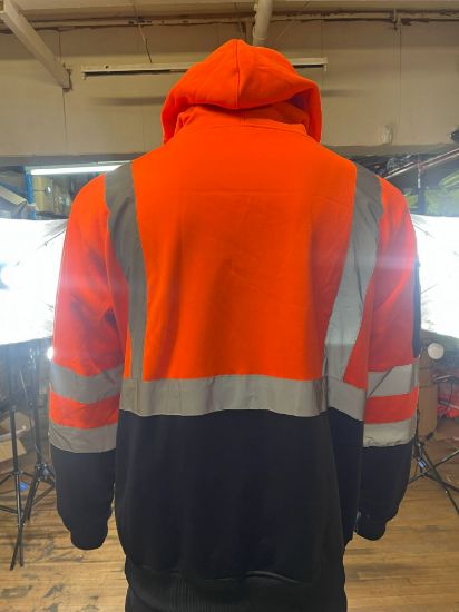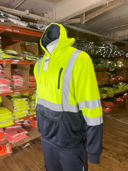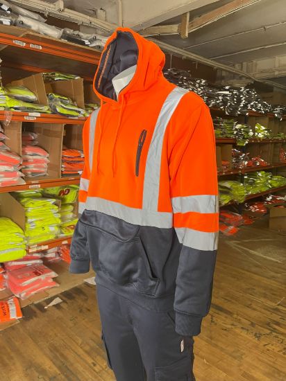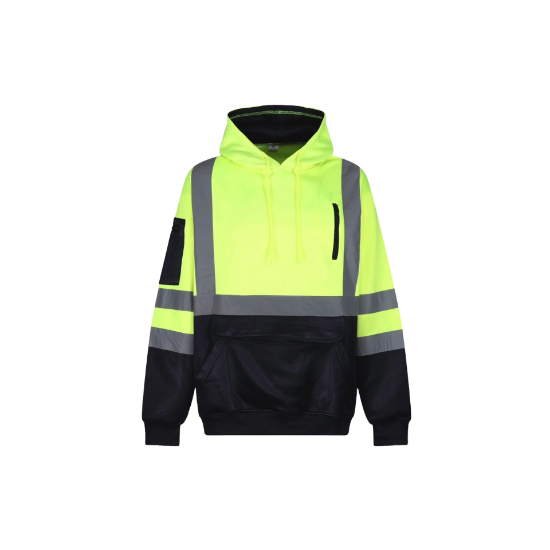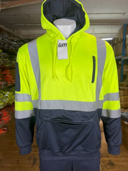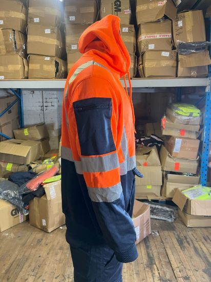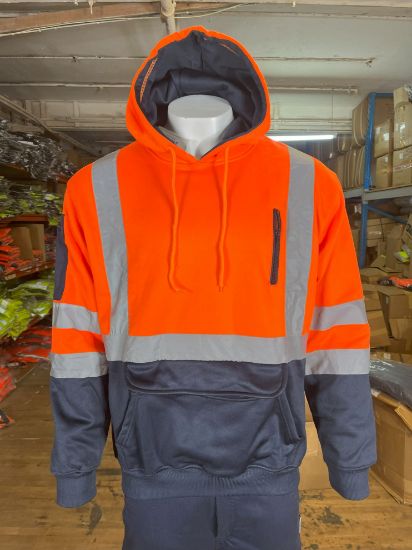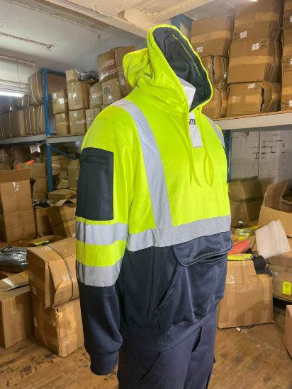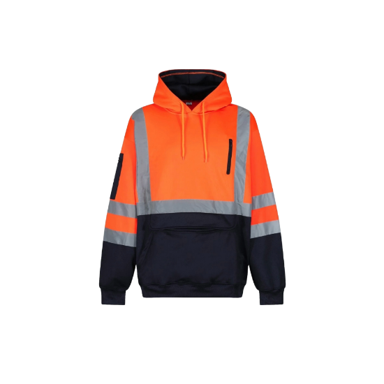 High Visibility Reflective Pullover Zipped Pocket Hoodie Menswear Sweater, Tracksuit Tops, Sweatshirts, Multi-functional, Kangaroo Hoodie, Small to 4XL, 100% Polyester, 300 GSM, Orange/Navy, Yellow/Navy