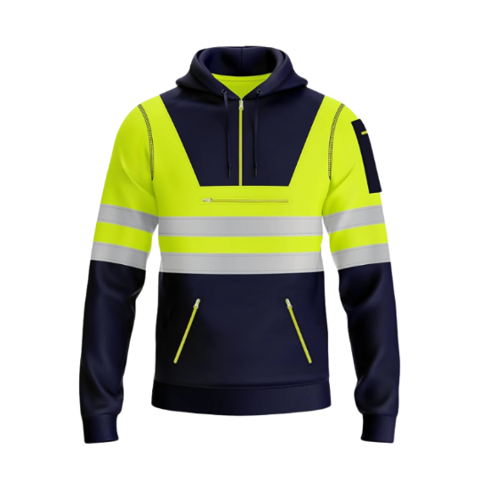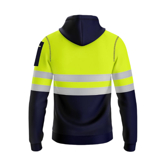 The multi-functional design of the hoodie allows it to be worn in various ways, such as a hoodie or a regular jumper. The available colors for the hoodie are orange/navy and yellow/navy, giving you the option to choose the color that best suits your style.