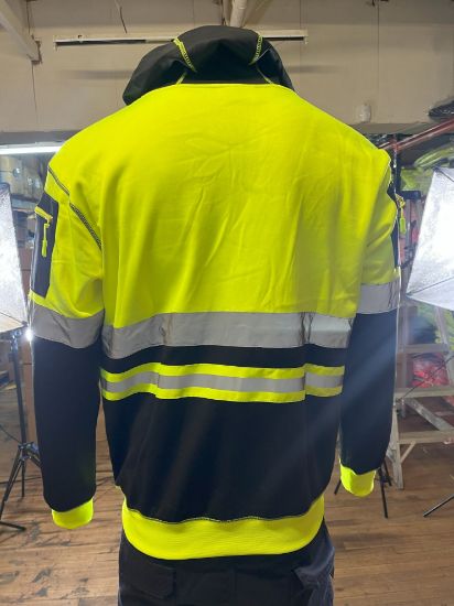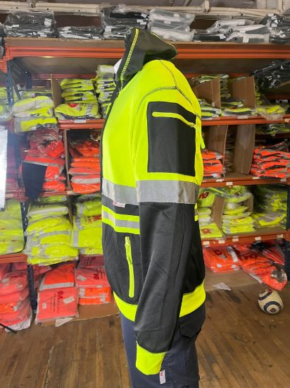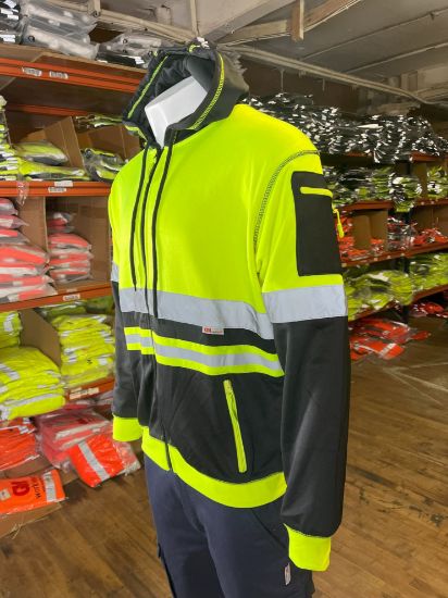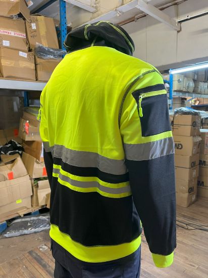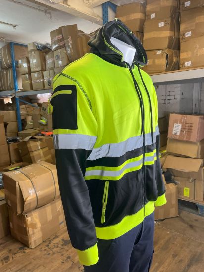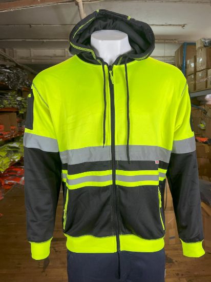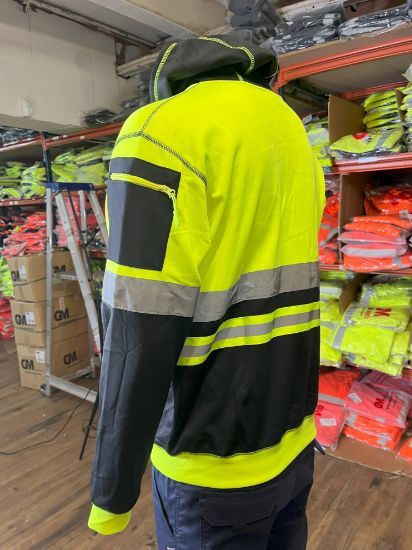 The front zipped pockets provide a secure place to store small items such as keys or a phone, while also allowing for easy access to them when needed. The available colors for this hoodie are orange/black and yellow/black, giving you the option to choose the color that best suits your style.